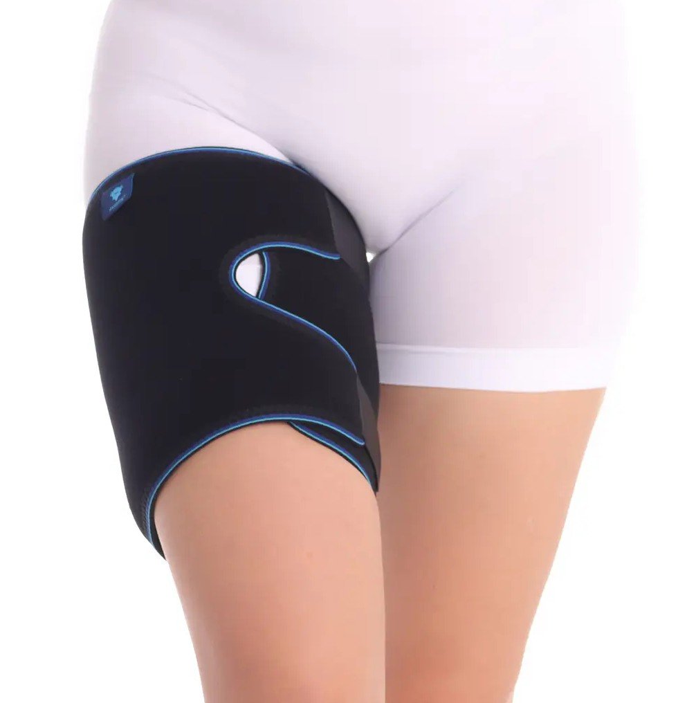 Made from neoprene material. Provides analgesic effect with compression. Reduces edema and supports the muscles. Used for injuries of abductor, adductor, hamstring and quadriceps muscles.
